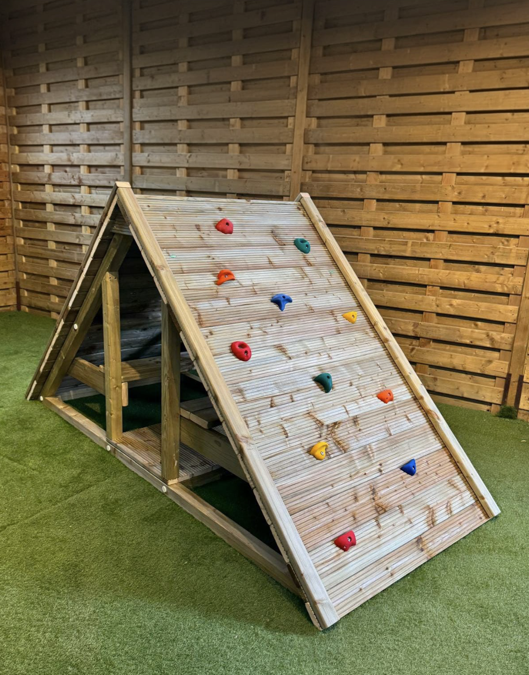 Cabane à grimper avec 2 bancs sous la cabane